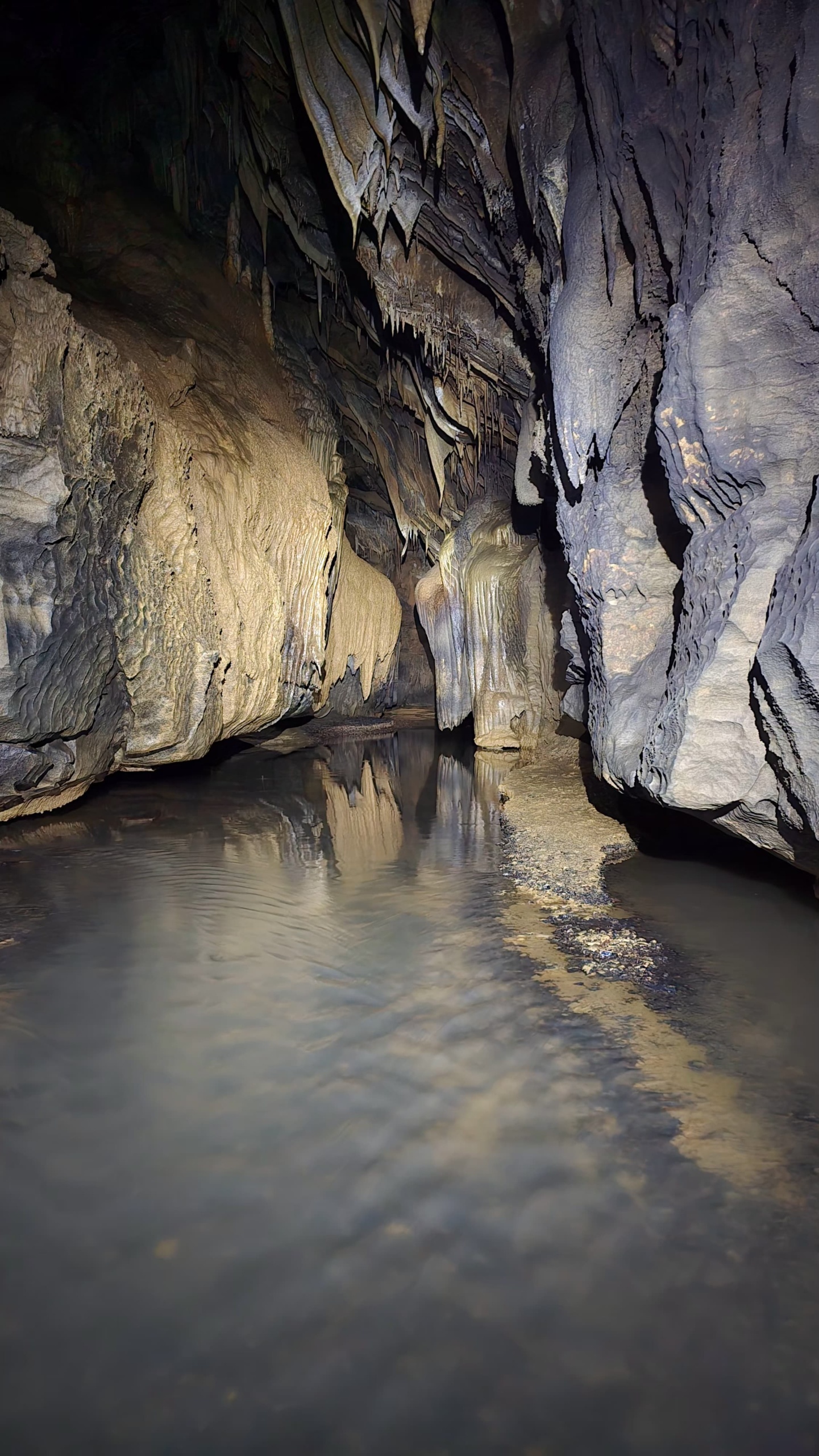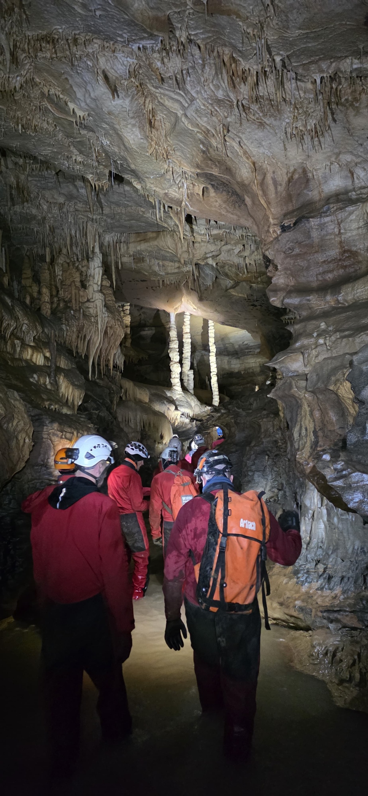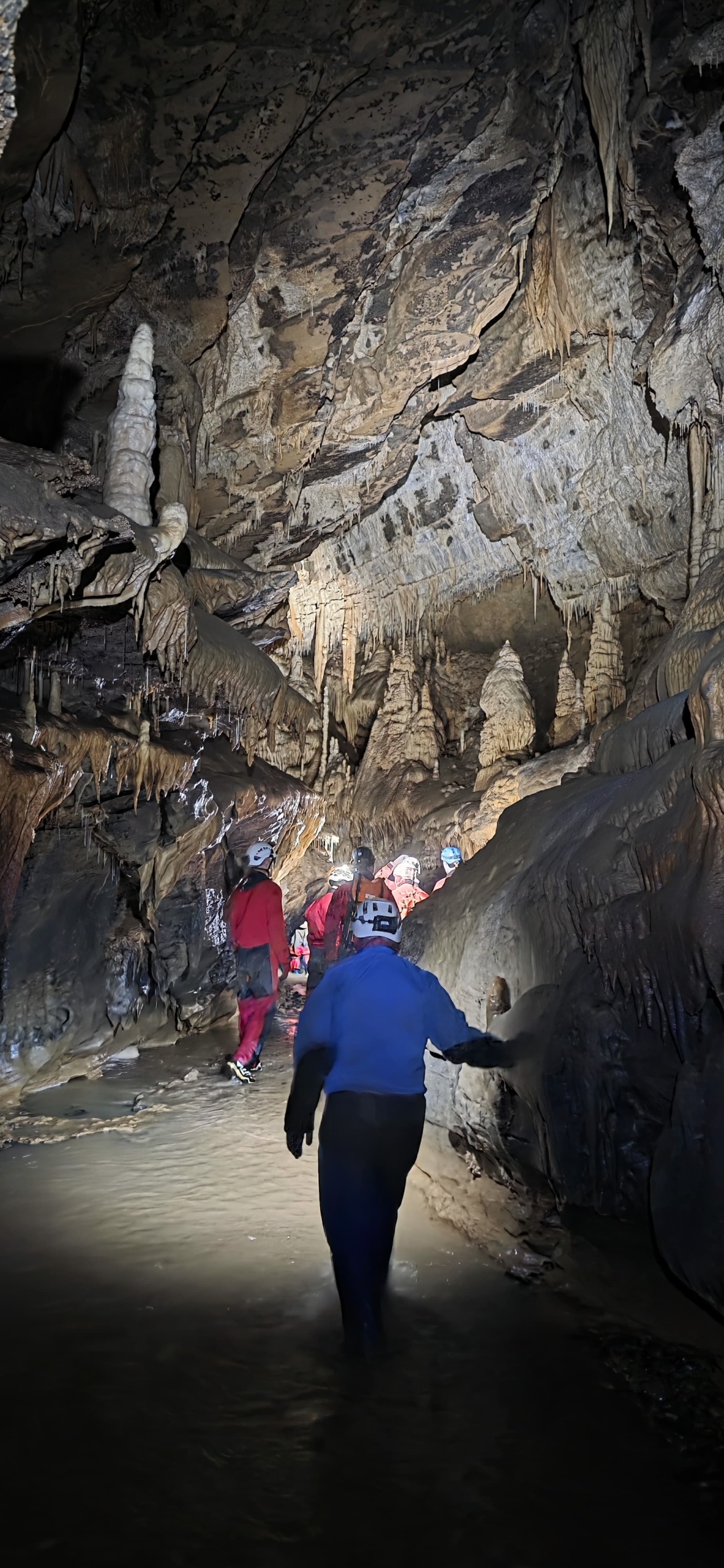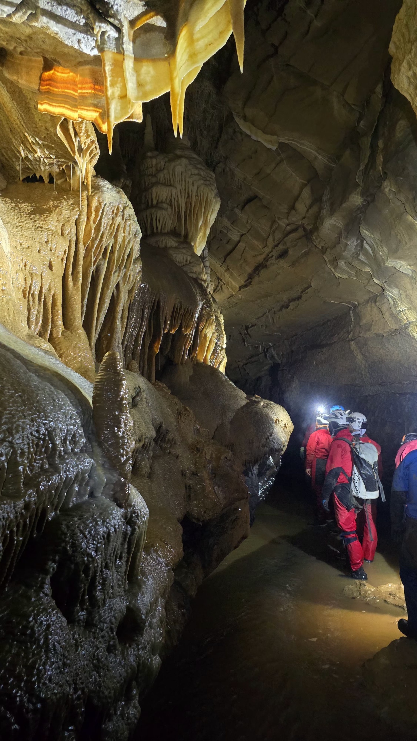quelques minutes suffisent à atteindre les beaux volumes du collecteur, où l’on peut déambuler tranquillement, et admirer , tout le long du parcours , le magnifique travail de l’eau et du temps , sculptures monumentales mais fragiles, qu’il faut prendre garde à ne pas abimer de nos casques et de nos mains. Certaines d’entre elles ont une couleur orange et un velouté très particulier, que je n’avais jamais encore vu avant