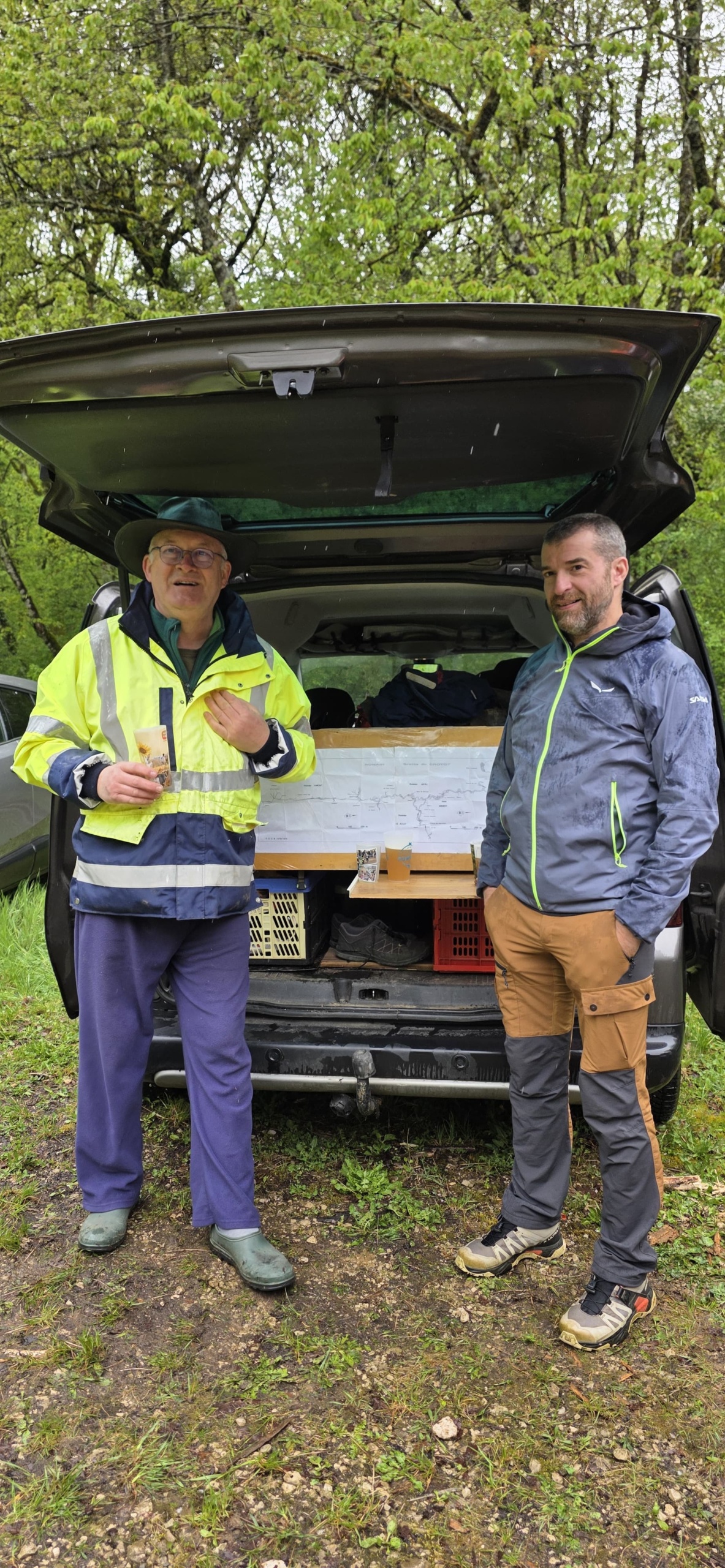 Vite, au chaud et au sec ! Café, tisane et bière made in Micka nous requinquent au parking et nous remercions nos hôtes avec lesquels nous avons passé un super moment !